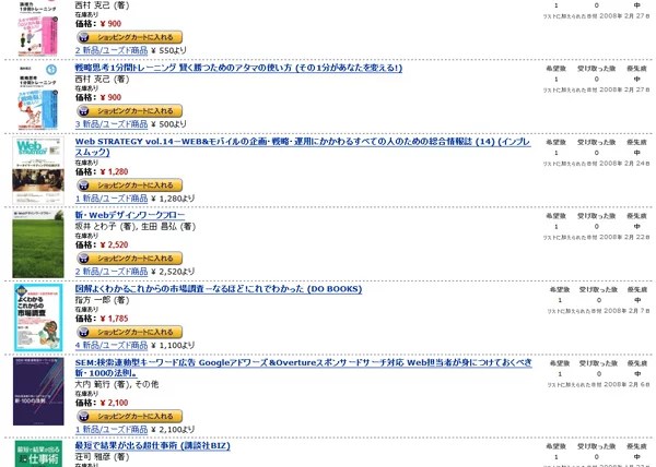 ちなみに上の画像で使ったのは自分のウィッシュリストの画面をキャプチャしたものですけど、こう見返してみると今年はウェブ系の本が少なかったりします。ほしい物リストも良い機能なので、気になる本があればポンポン放り込んでストックしておいたり、決心がついて改めて購入する時にはわざわざ探す手間が省けて便利ですしね。