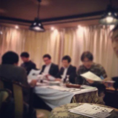 この会合は毎回様々な分野で活躍されている方々を講師に招いて最初に講義を行ったあと会食するという形式で、これまでは参加者として加わらせていただいていたのですが今回は講師にご指名いただきお話させていただきました(写真は私と同じく講師に指名された知人です)。